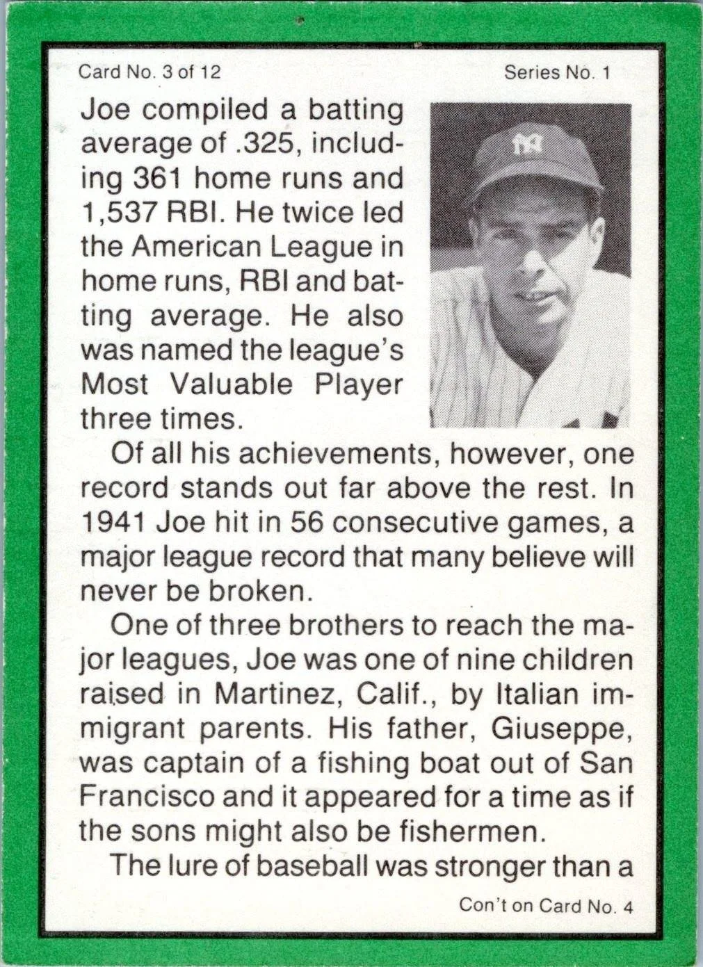 This is a nice example of a 1983 ASA The Joe DiMaggio Story #3 183 asa the Joe DiMaggio story #3