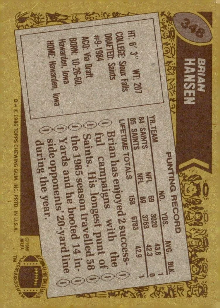 In 1986 Brian Hansen played for the New Orleans Saints.