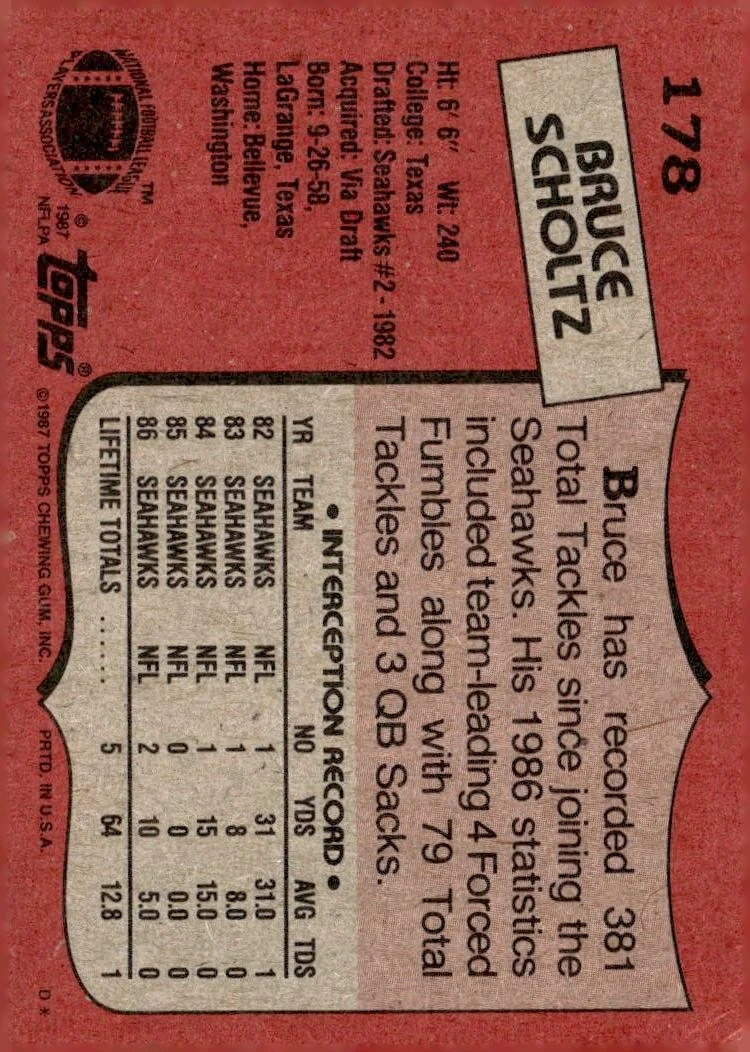 In 1987 Bruce Scholtz played for the Seattle Seahawks.