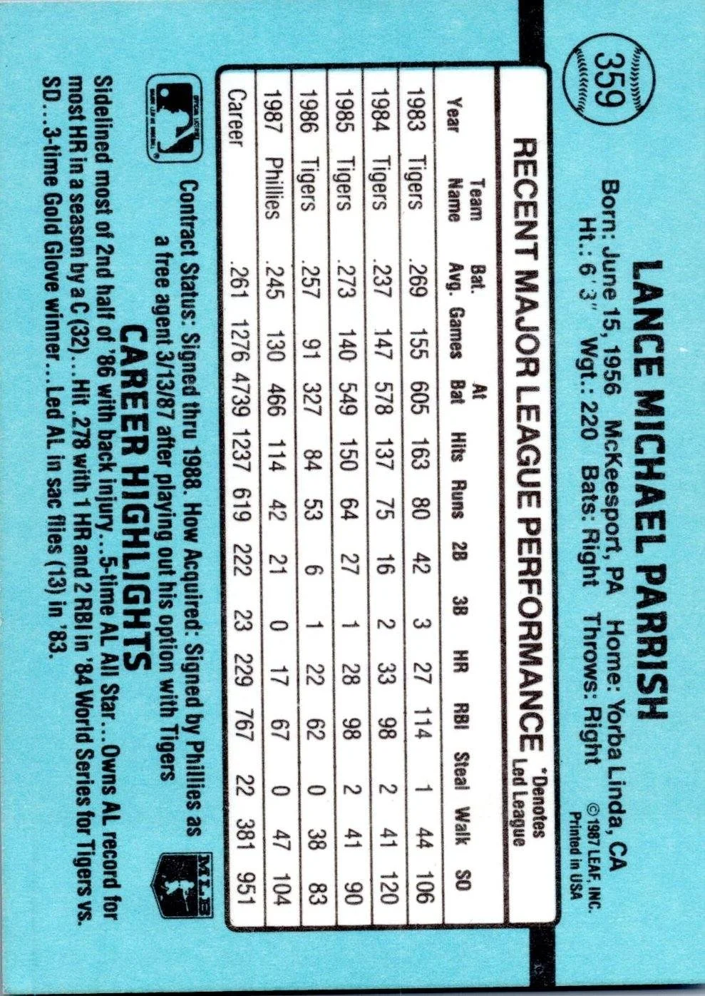 This is a nice example of a 1988 Donruss #359 Lance Parrish