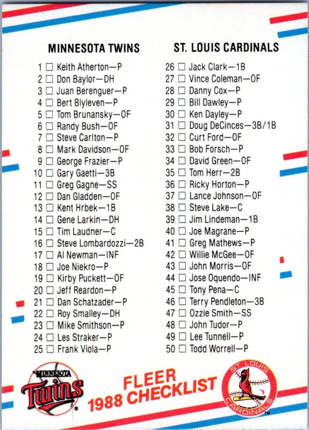 In 1988 Checklist: Twins / Cardinals / Tigers / Giants CL, ERR played for the .