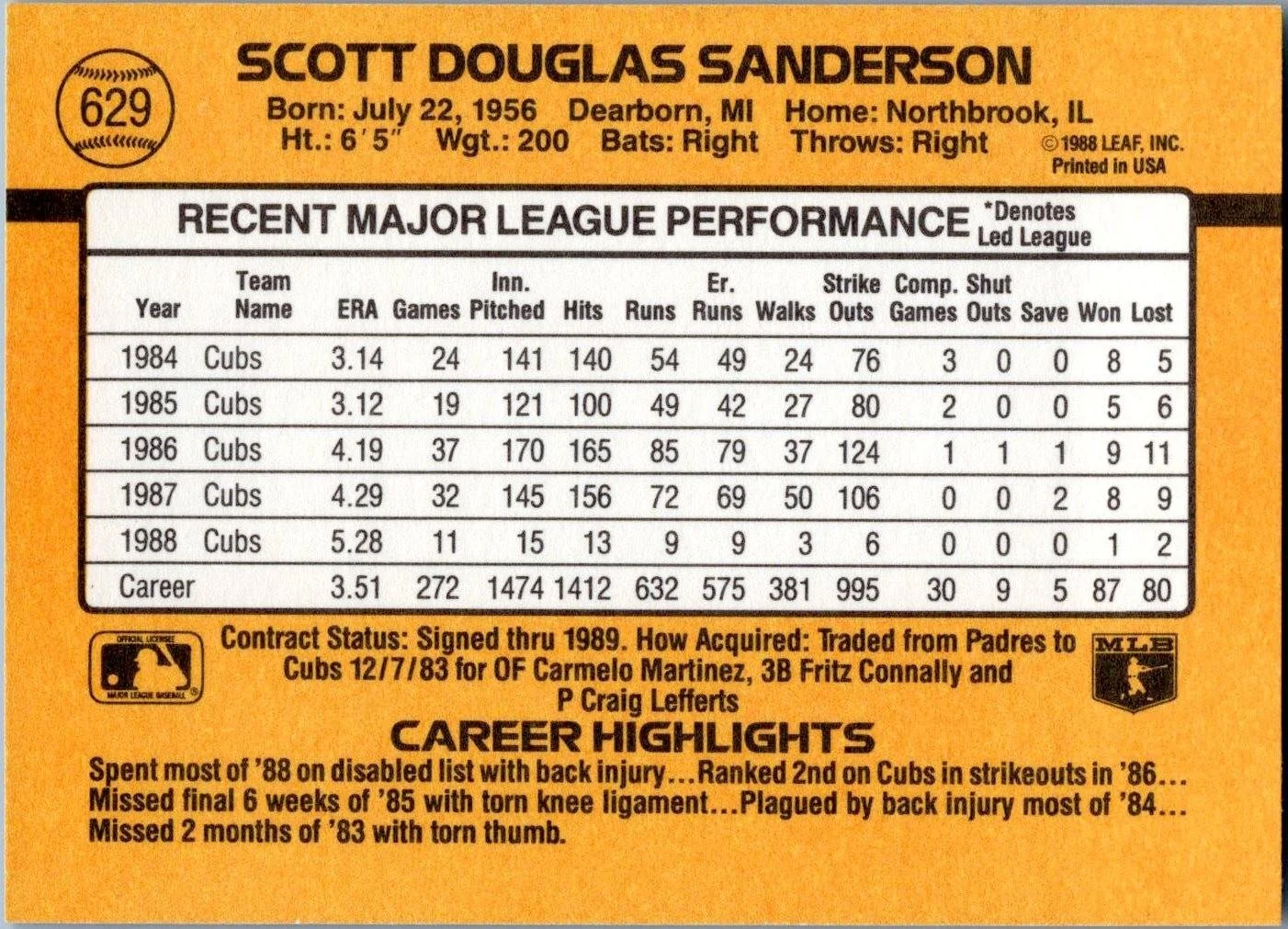 In 1989 Scott Sanderson played for the Chicago Cubs.