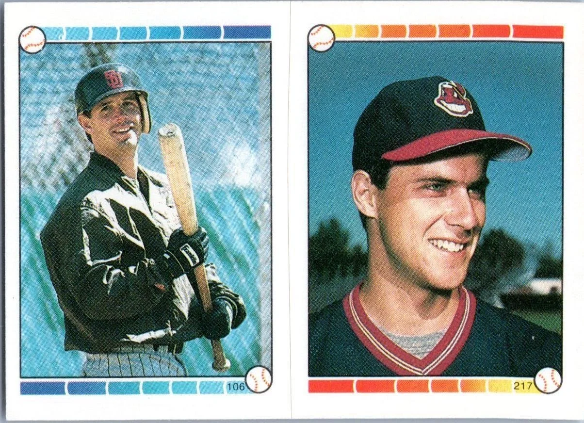 This is a nice example of a 1989 O-Pee-Chee Stickers #106 / 217b Randy Ready / Scott Bailes VAR