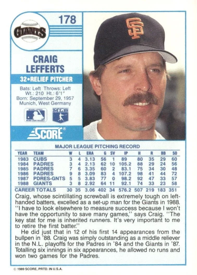 In 1989 Craig Lefferts played for the San Francisco Giants.