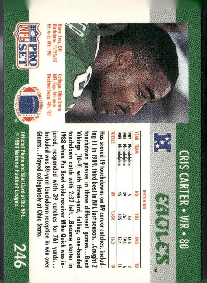 This is a nice example of a 1990 Pro Set #246 Cris Carter