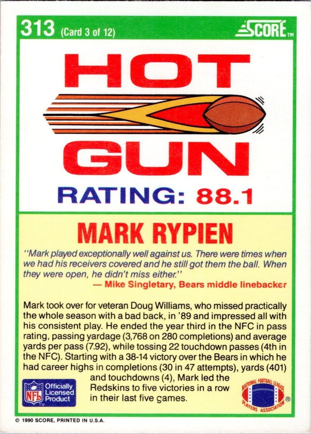 This is a nice example of a 1990 Score #313 Mark Rypien