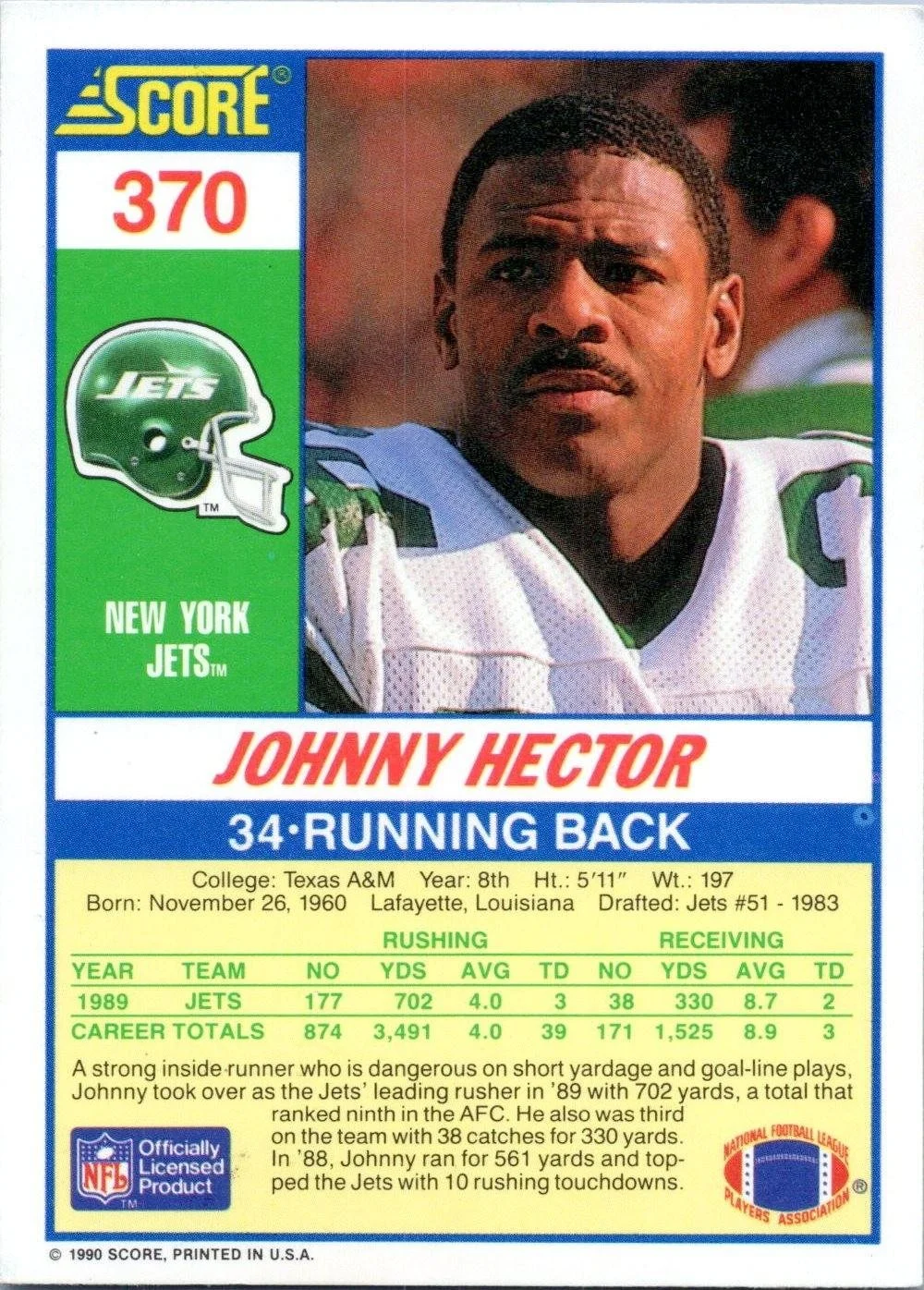 In 1990 Johnny Hector played for the New York Jets.