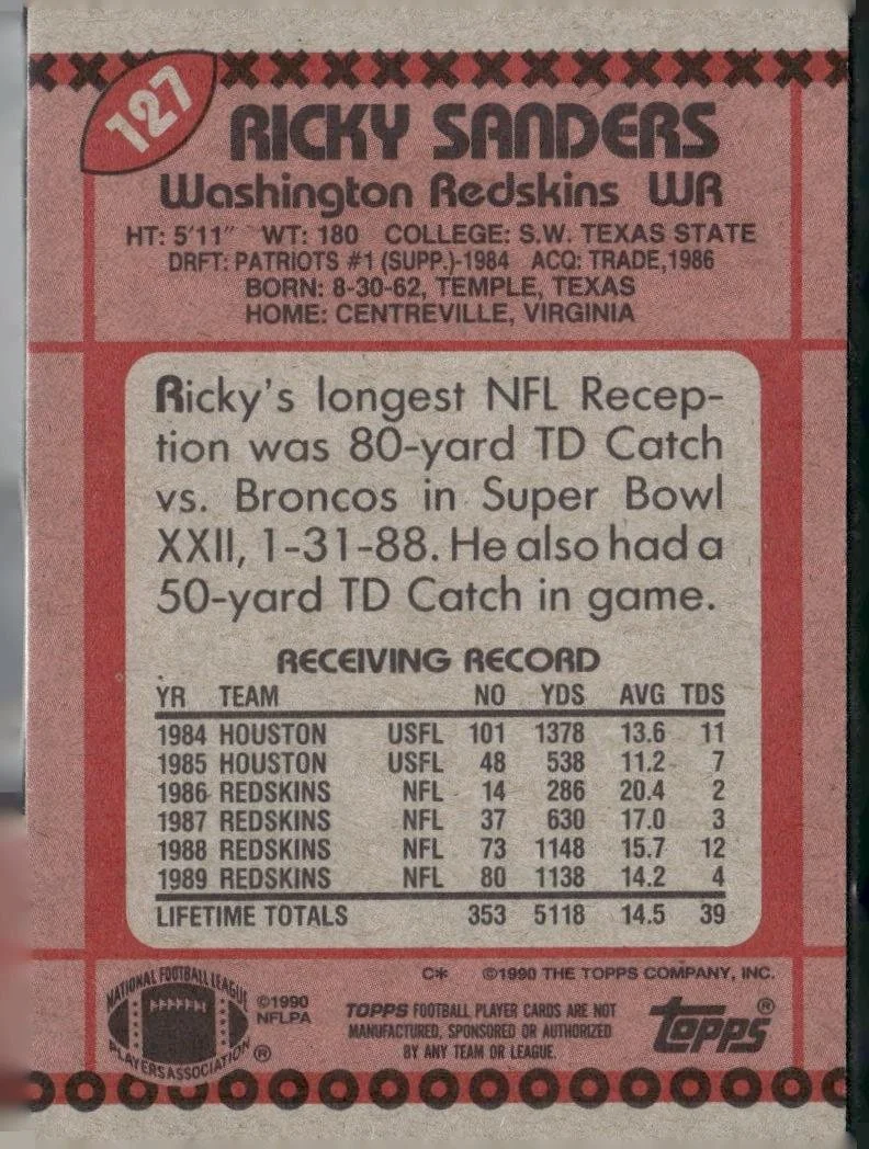 This is a nice example of a 1990 Topps #127 Ricky Sanders