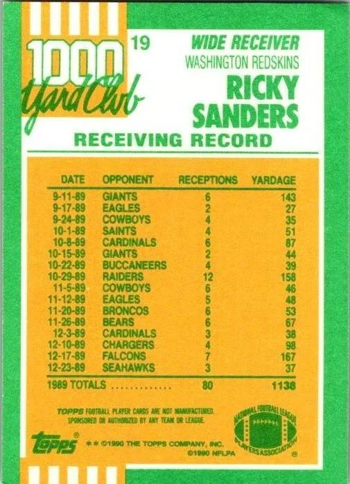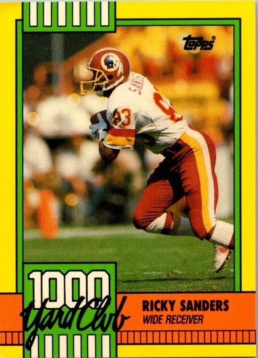 This is a nice example of a 1990 Topps #19 Ricky Sanders 1000 Yard Club