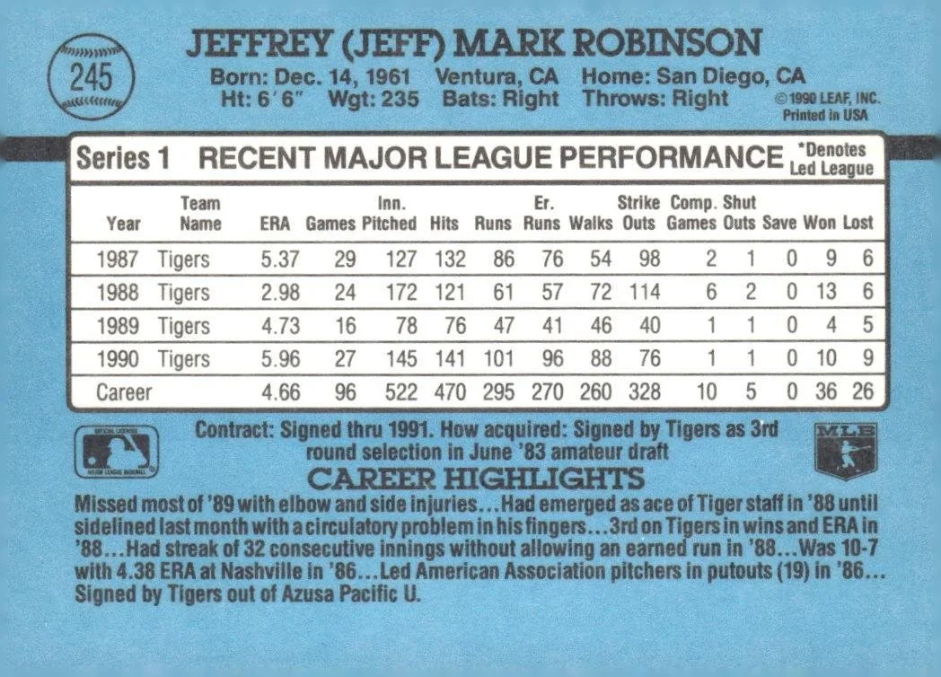 This is a nice example of a 1991 Donruss #245 Jeff Robinson
