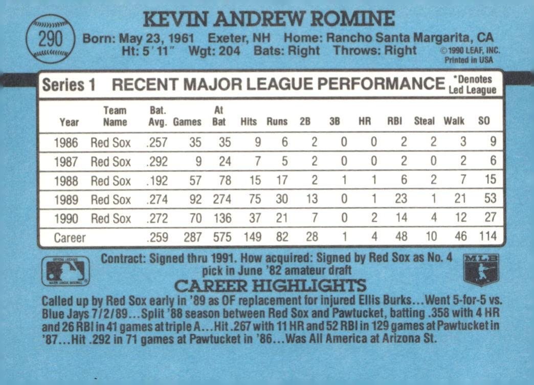 This is a nice example of a 1991 Donruss #290 Kevin Romine