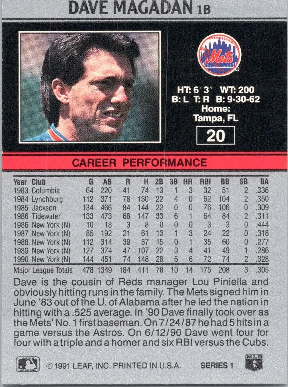 This is a nice example of a 1991 Leaf #20 Dave Magadan