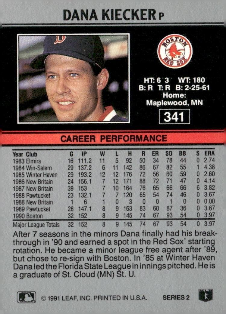 This is a nice example of a 1991 Leaf #341 Dana Kiecker
