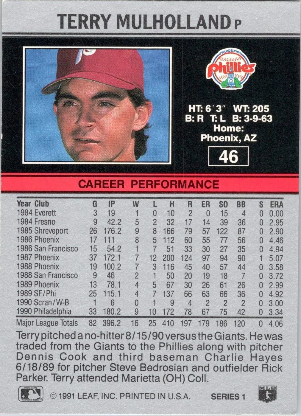 In 1991 Terry Mulholland played for the Philadelphia Phillies.