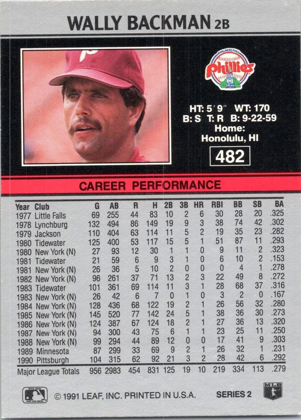 In 1991 Wally Backman played for the Philadelphia Phillies.