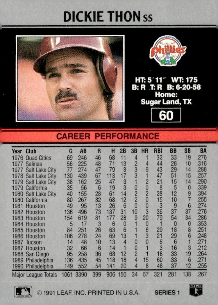This is a nice example of a 1991 Leaf #60 Dickie Thon