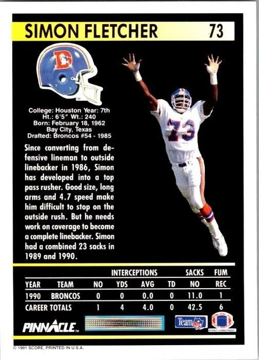 In 1991 Simon Fletcher played for the Denver Broncos.