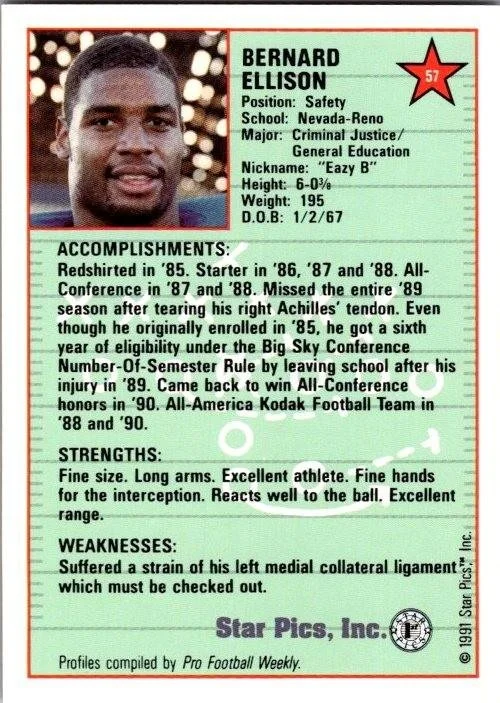 This is a nice example of a 1991 Star Pics #57 Bernard Ellison