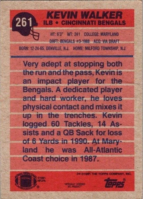 In 1991 Kevin Walker played for the Cincinnati Bengals.