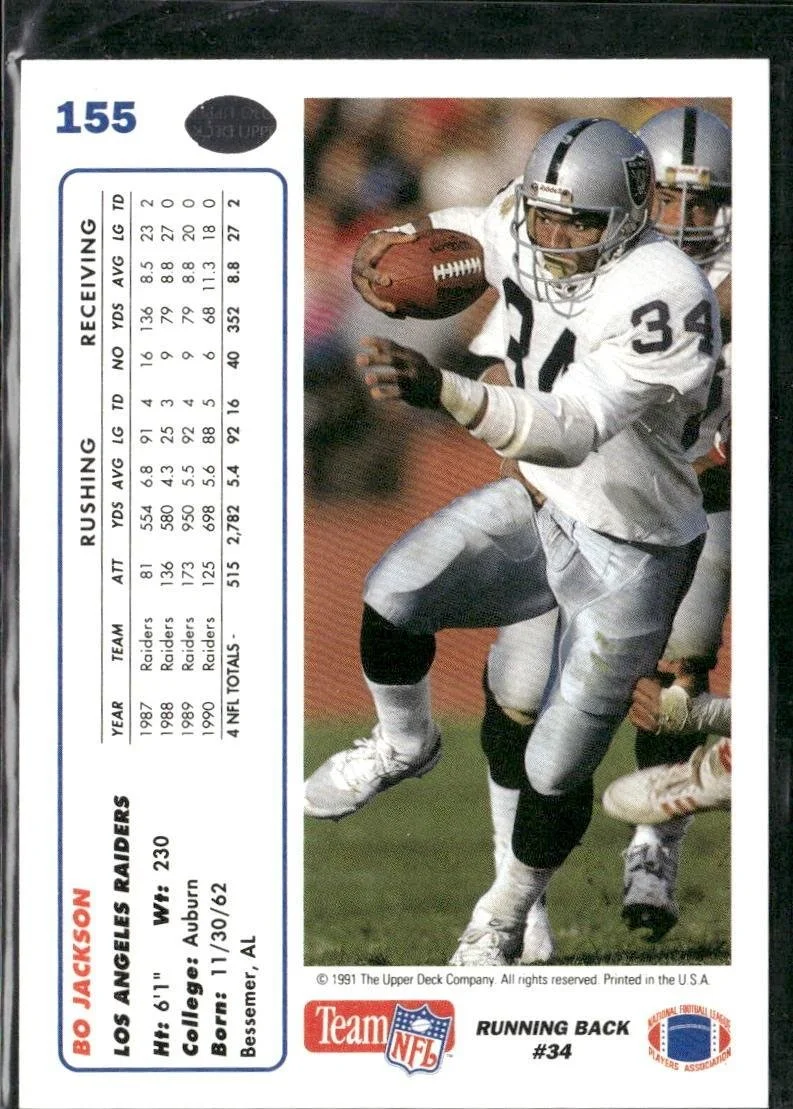 This is a nice example of a 1991 Upper Deck #155c Bo Jackson