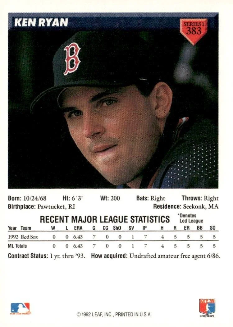 In 1993 Ken Ryan played for the Boston Red Sox.