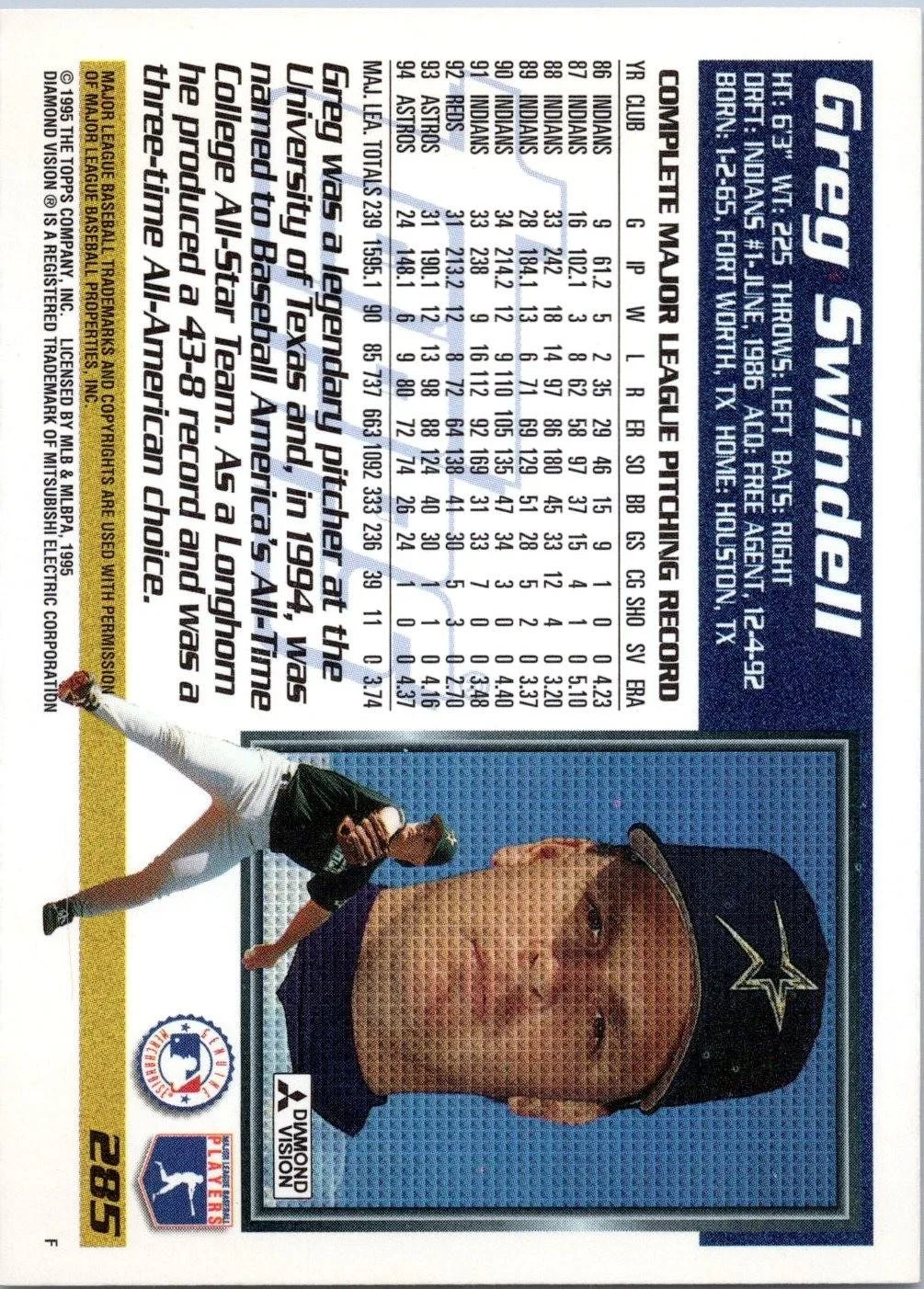 In 1995 Greg Swindell played for the Houston Astros.