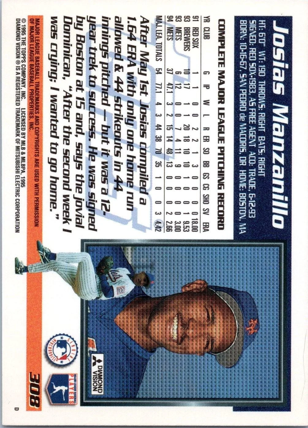 In 1995 Josias Manzanillo played for the New York Mets.