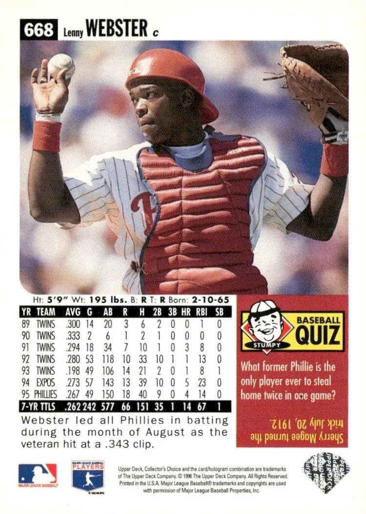 In 1996 Lenny Webster played for the Philadelphia Phillies.