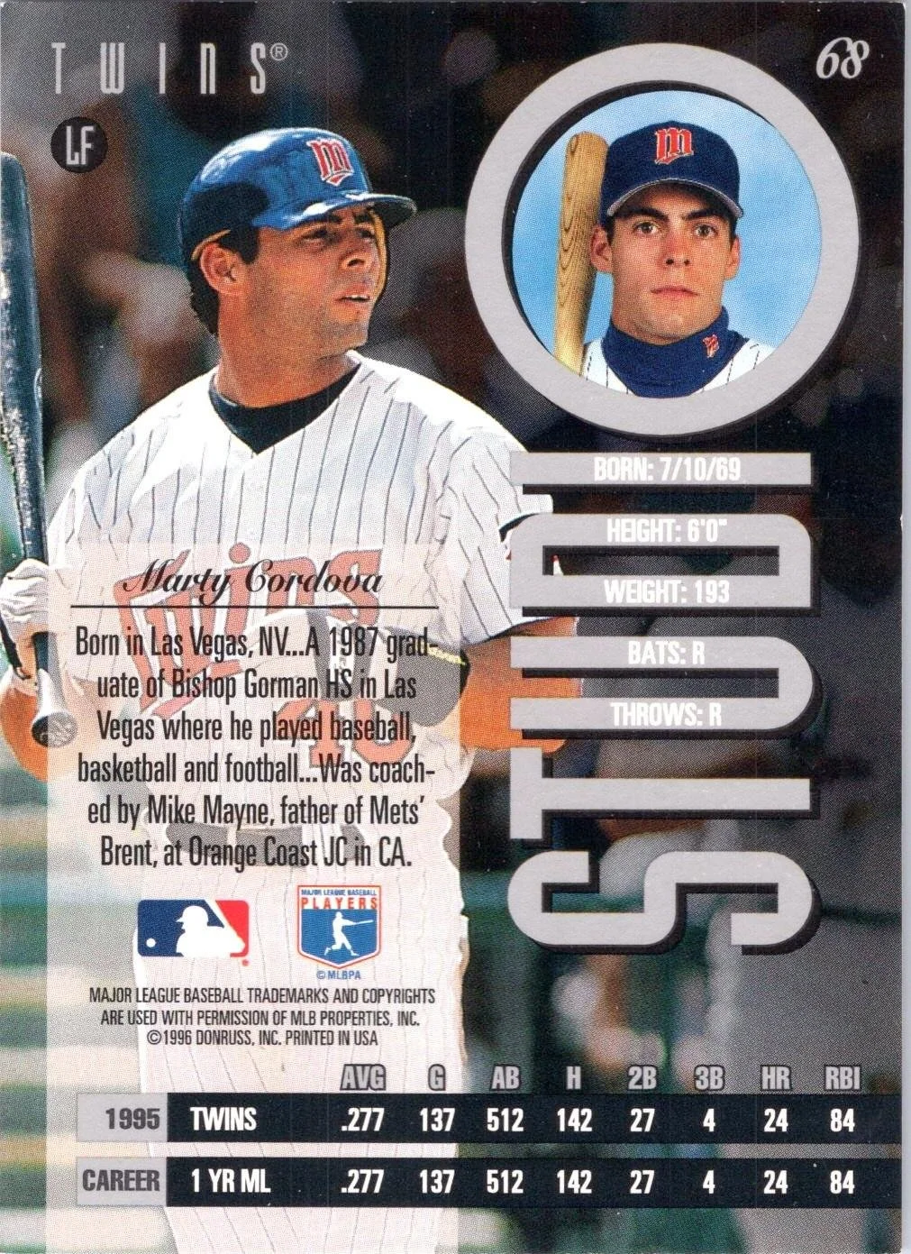 In 1996 Marty Cordova played for the Minnesota Twins.