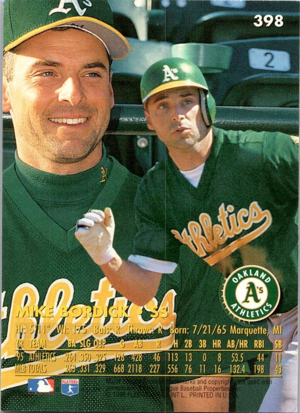 In 1996 Mike Bordick played for the Oakland Athletics.