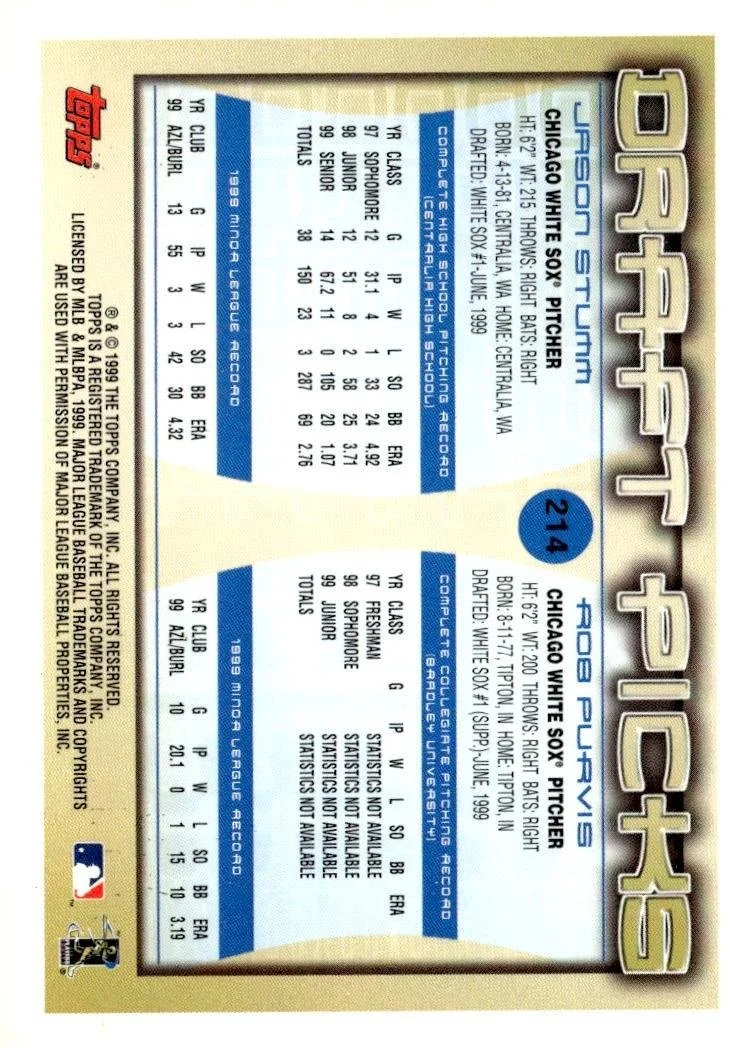 In 2000 Rob Purvis / Jason Stumm played for the Chicago White Sox.