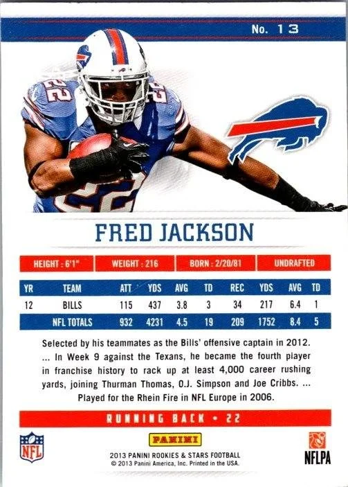 This is a nice example of a 2013 Panini Rookies & Stars #13 Fred Jackson