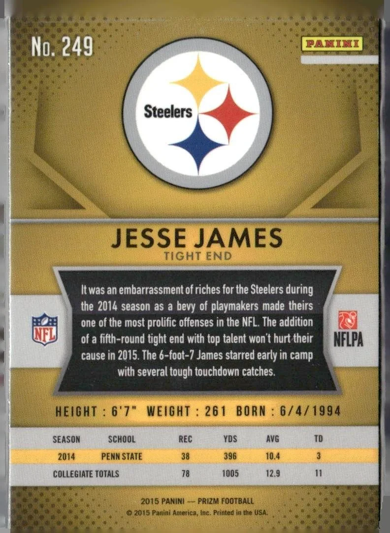 This is a nice example of a 2015 Panini Prizm #249 Jesse James