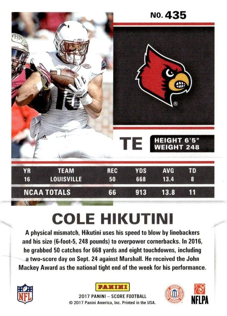 This is a nice example of a 2017 Score #435 Cole Hikutini