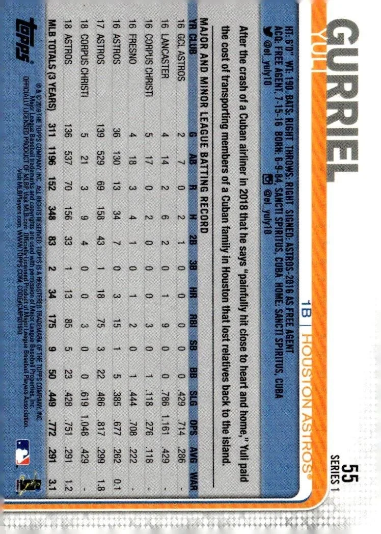 This is a nice example of a 2019 Topps #55 Yuli Gurriel