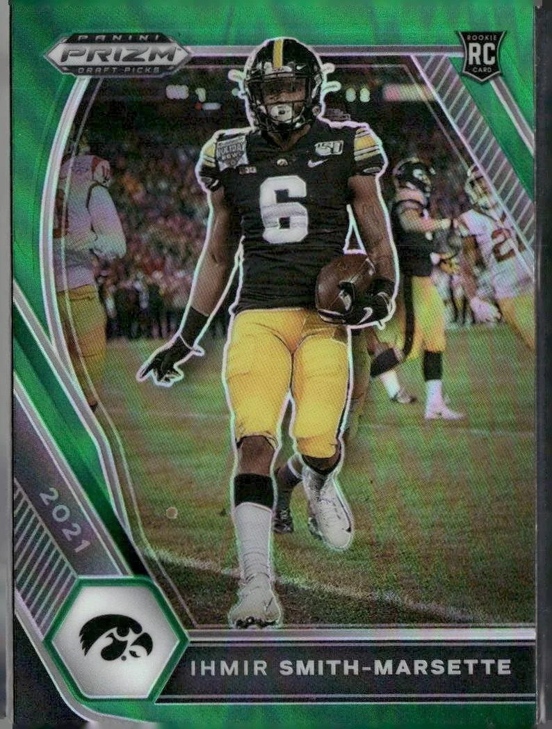 This is a nice example of a 2021 Panini Prizm Draft Picks Collegiate #128 Ihmir Smith-Marsette Green