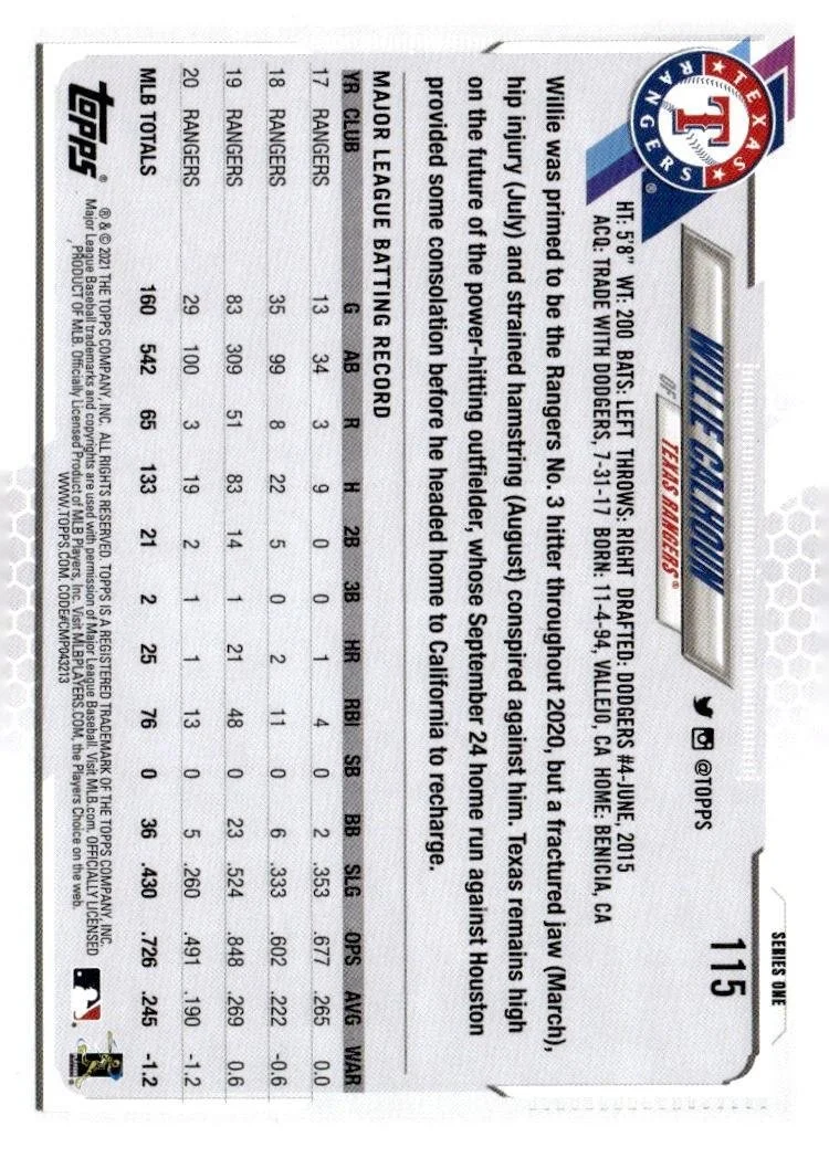 This is a nice example of a 2021 Topps #115 Willie Calhoun