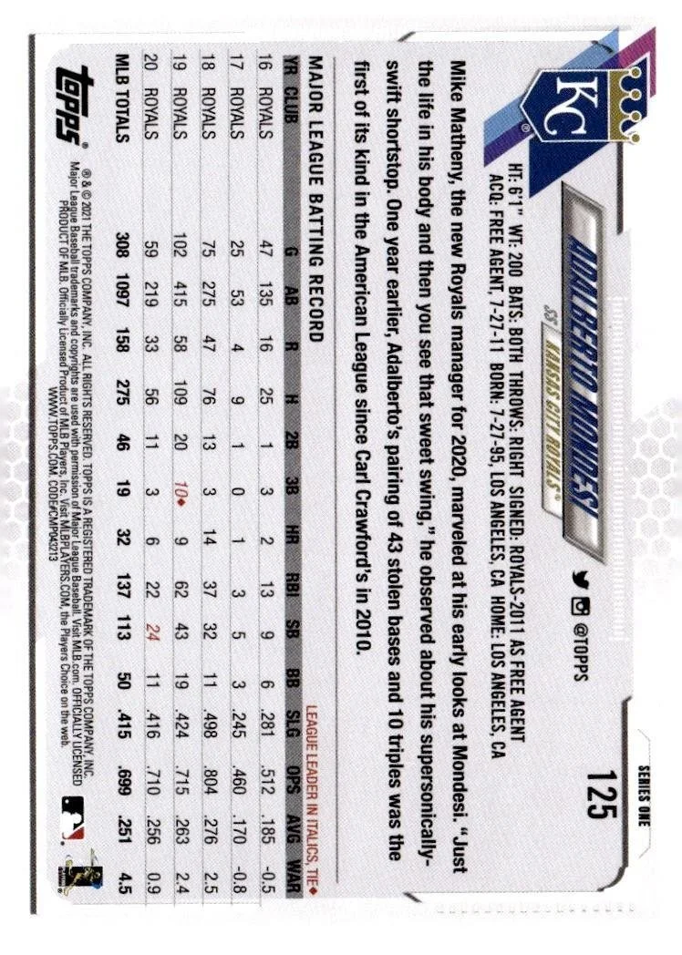 2021 Topps #125 Adalberto Mondesi