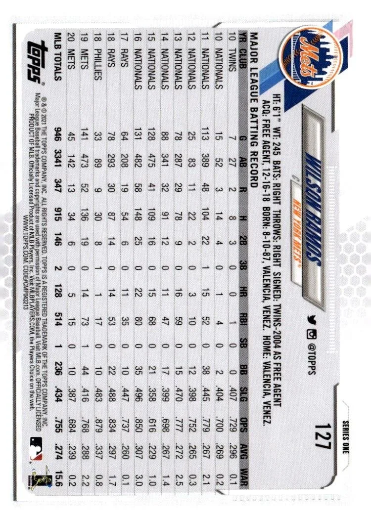 This is a nice example of a 2021 Topps #127 Wilson Ramos