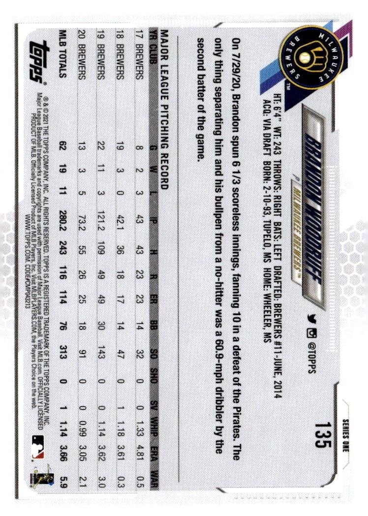 This is a nice example of a 2021 Topps #135 Brandon Woodruff