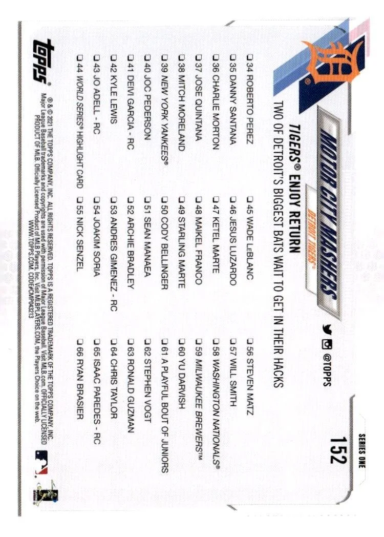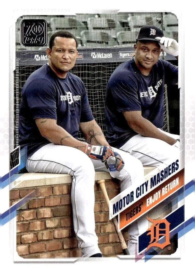 This is a nice example of a 2021 Topps #152 Motor City Mashers (Miguel Cabrera / Jonathan Schoop)