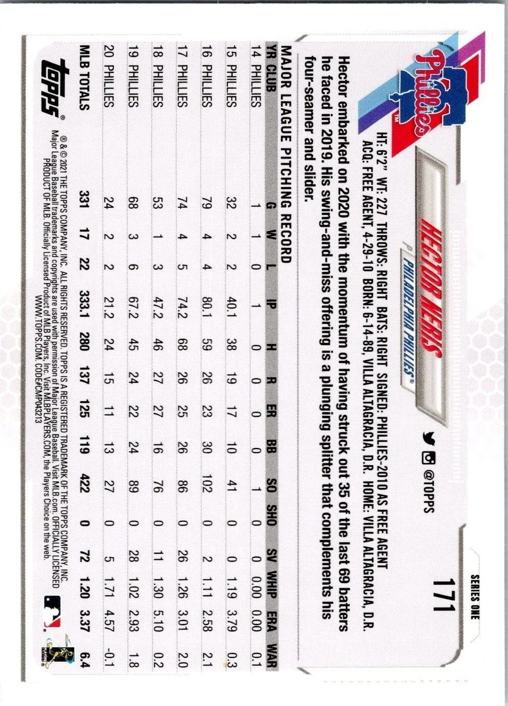 This is a nice example of a 2021 Topps #171 Hector Neris