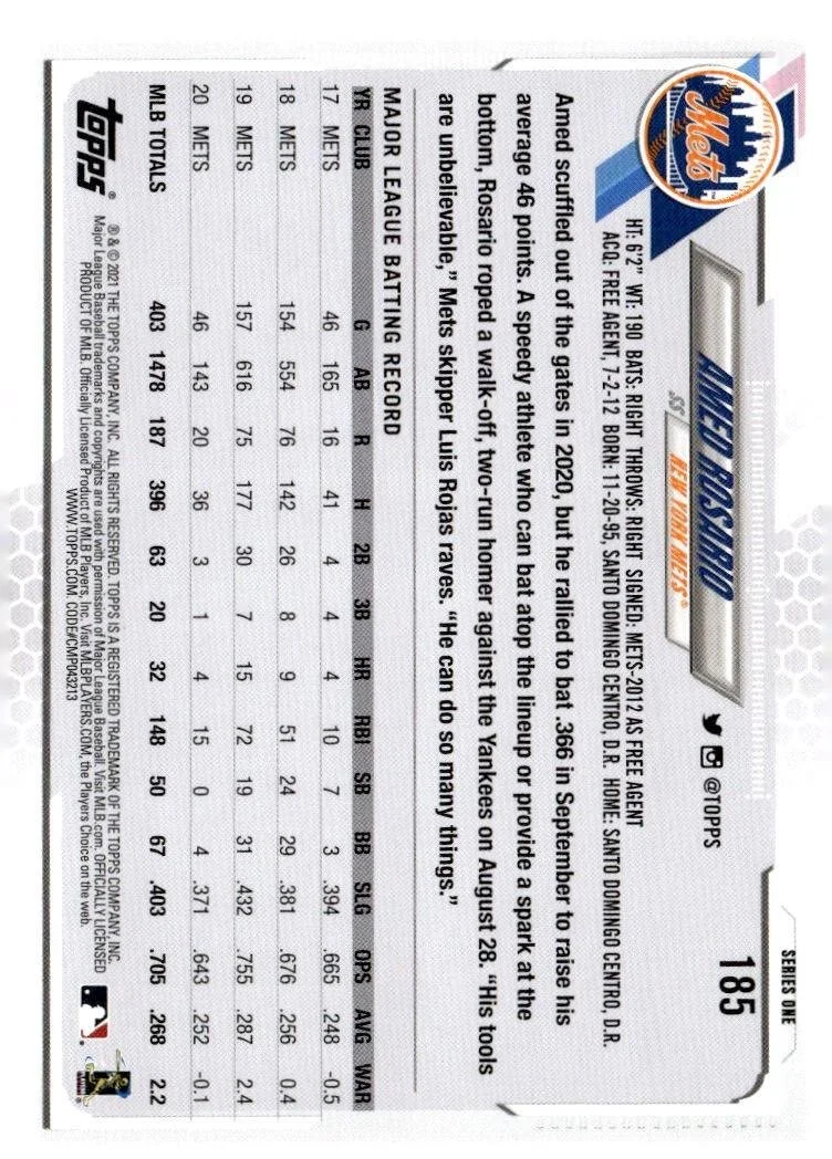 This is a nice example of a 2021 Topps #185 Amed Rosario
