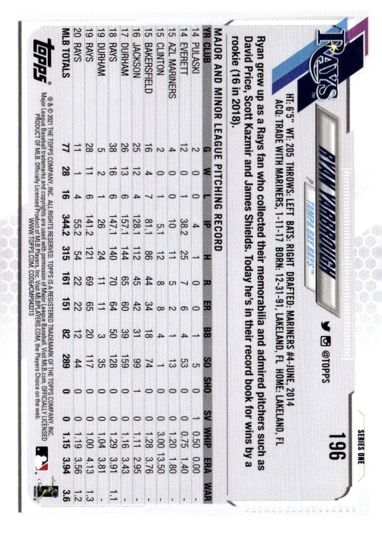 This is a nice example of a 2021 Topps #196 Ryan Yarbrough