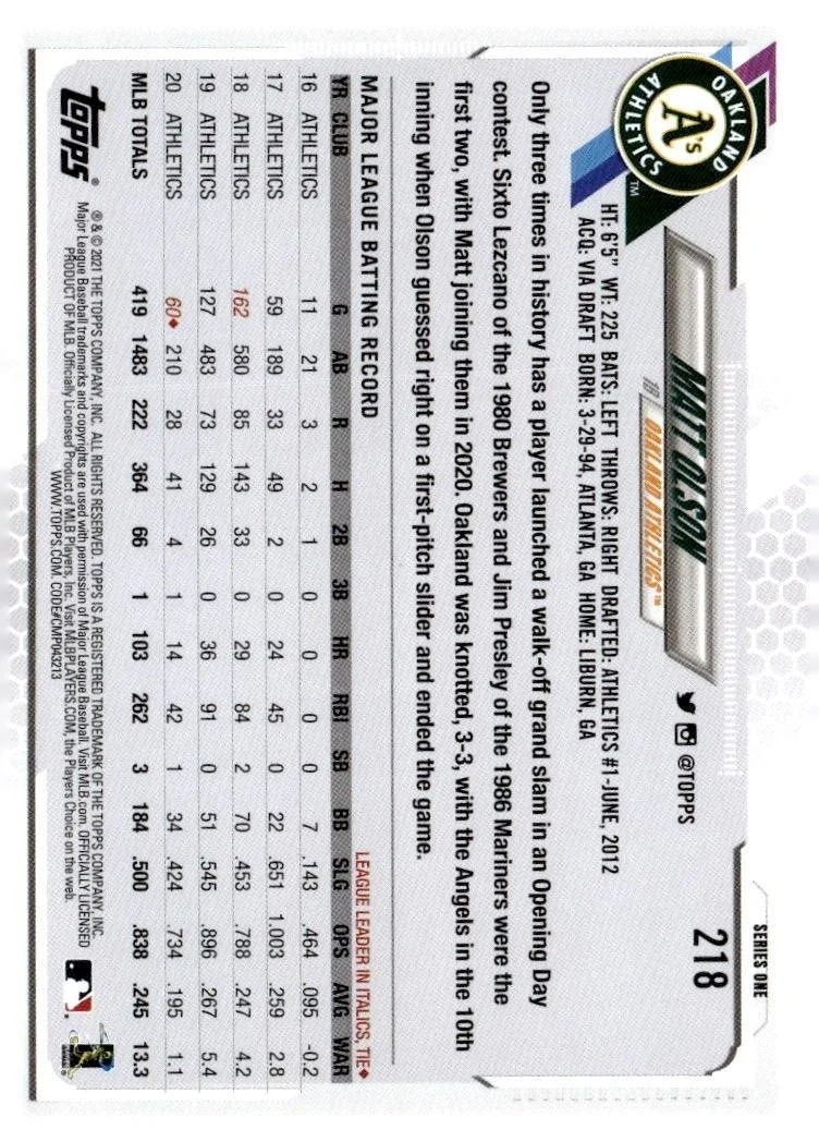 This is a nice example of a 2021 Topps #218 Matt Olson
