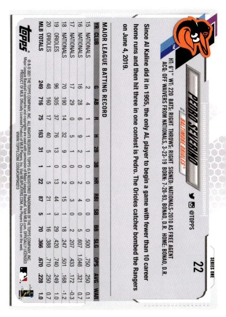 This is a nice example of a 2021 Topps #22 Pedro Severino