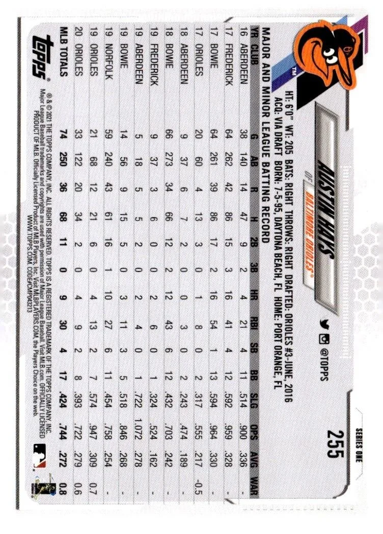 This is a nice example of a 2021 Topps #255 Austin Hays