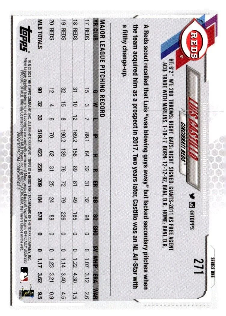 This is a nice example of a 2021 Topps #271 Luis Castillo