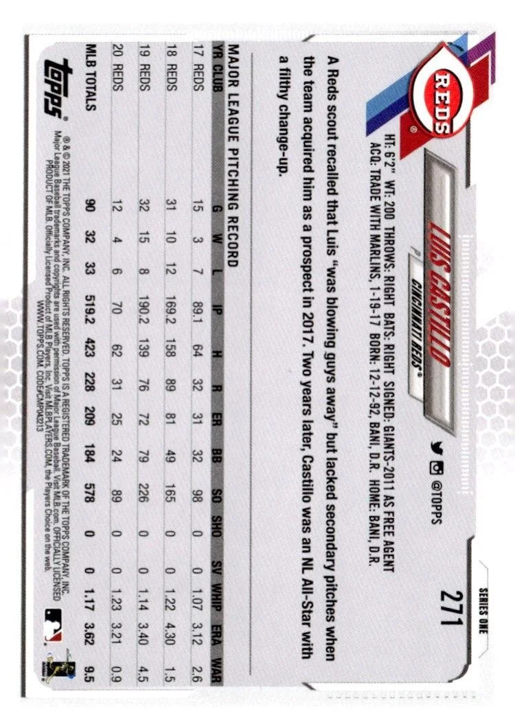 This is a nice example of a 2021 Topps #271 Luis Castillo