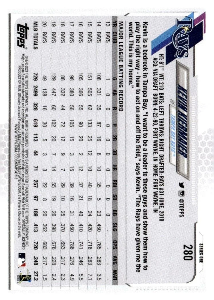 This is a nice example of a 2021 Topps #280 Kevin Kiermaier